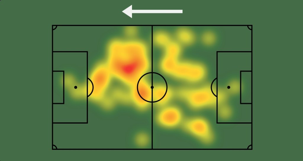 O bien roles muy parecidos a los que hace en Pachuca, que en el último partido de liga, donde los Tuzos se enfrentaron a los Xolos, Erick marcó 3 goles, y para mostrarte la posición o el rol que Sánchez desempeñaría, aquí te mostramos el mapa de calor de Sánchez de ese encuentro. La imagen es del sitio SOFASCORE.